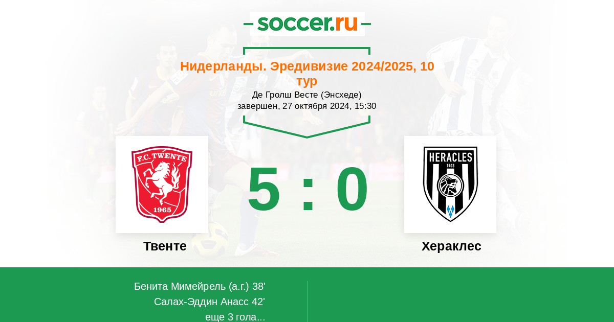 Нидерланды. Эредивизи 05.10.2025 Твенте Логотип футбольный клуб Твенте (Энсхеде) 2:1 Логотип футбольный клуб Хераклес (Алмело) Хераклес