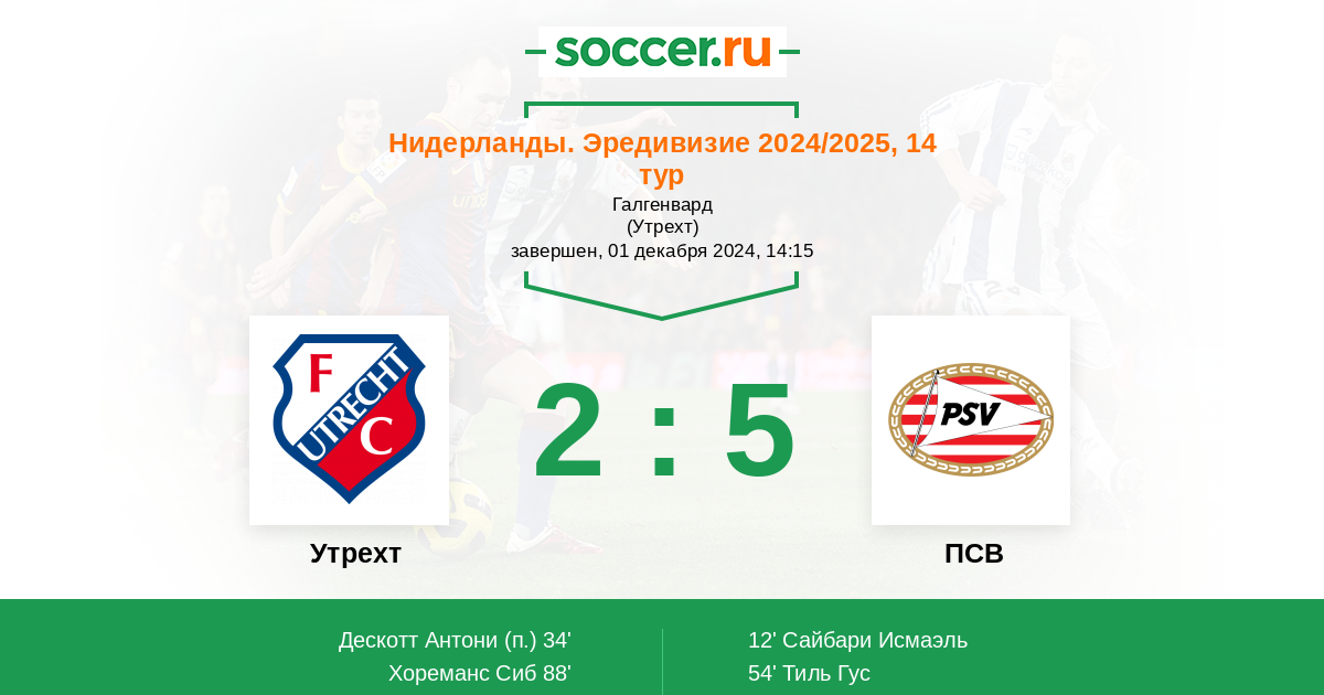 Нидерланды. Эредивизи 21.12.2025 Утрехт Логотип футбольный клуб Утрехт 1:2 Логотип футбольный клуб ПСВ (Эйндховен) ПСВ