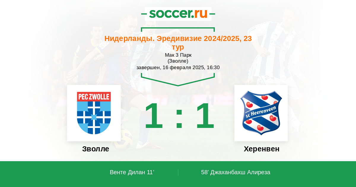 Нидерланды. Эредивизи 28.11.2025 Зволле Логотип футбольный клуб Зволле 2:1 Логотип футбольный клуб Херенвен Херенвен