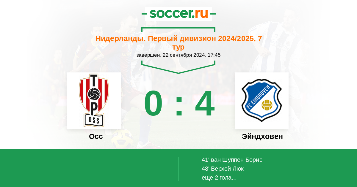 Нидерланды. Первый дивизион 16.09.2016 Осс Логотип футбольный клуб Осс 6:2 Логотип футбольный клуб Эйндховен Эйндховен