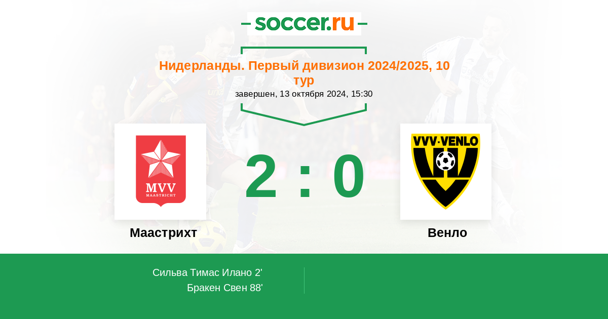 Нидерланды. Первый дивизион 09.10.2021 Венло Логотип футбольный клуб Венло 2:0 Логотип футбольный клуб Маастрихт Маастрихт