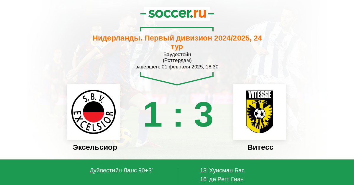 Нидерланды. Эредивизи 25.02.2024 Эксельсиор Логотип футбольный клуб Эксельсиор (Роттердам) 1:2 Логотип футбольный клуб Витесс (Арнем) Витесс