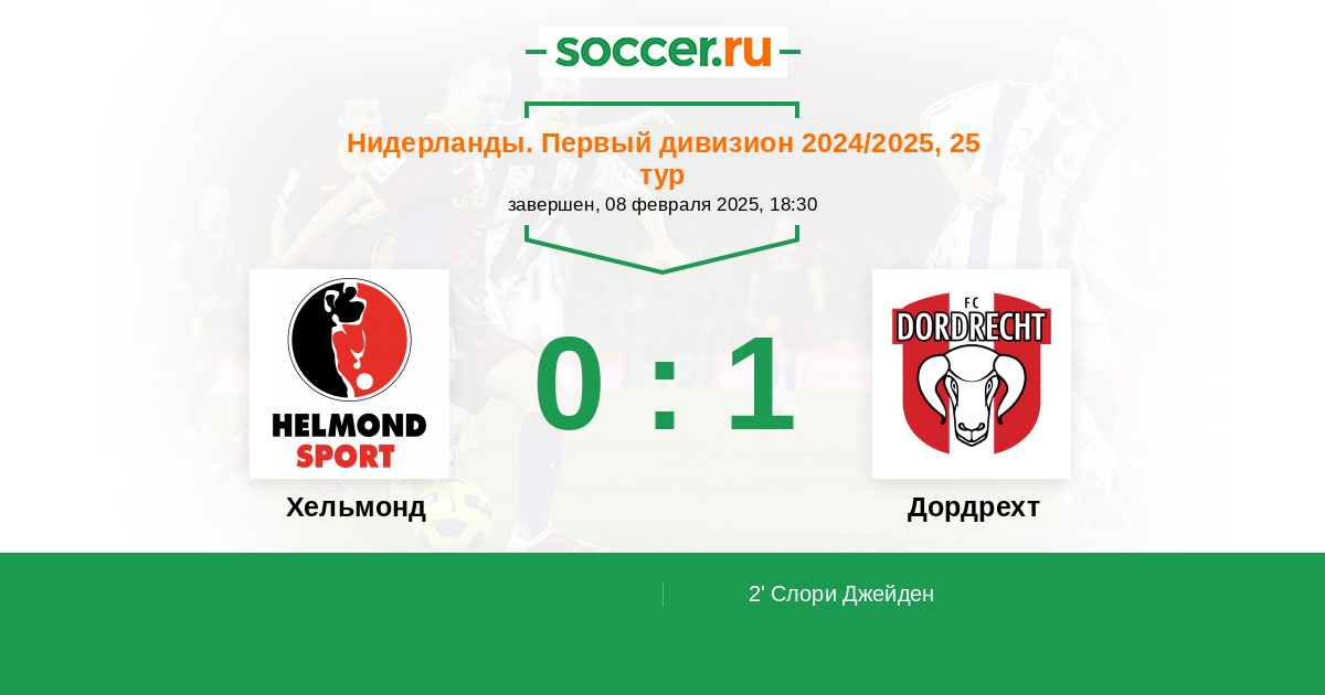 Нидерланды. Первый дивизион 24.10.2025 Хельмонд Логотип футбольный клуб Хельмонд 1:2 Логотип футбольный клуб Дордрехт Дордрехт