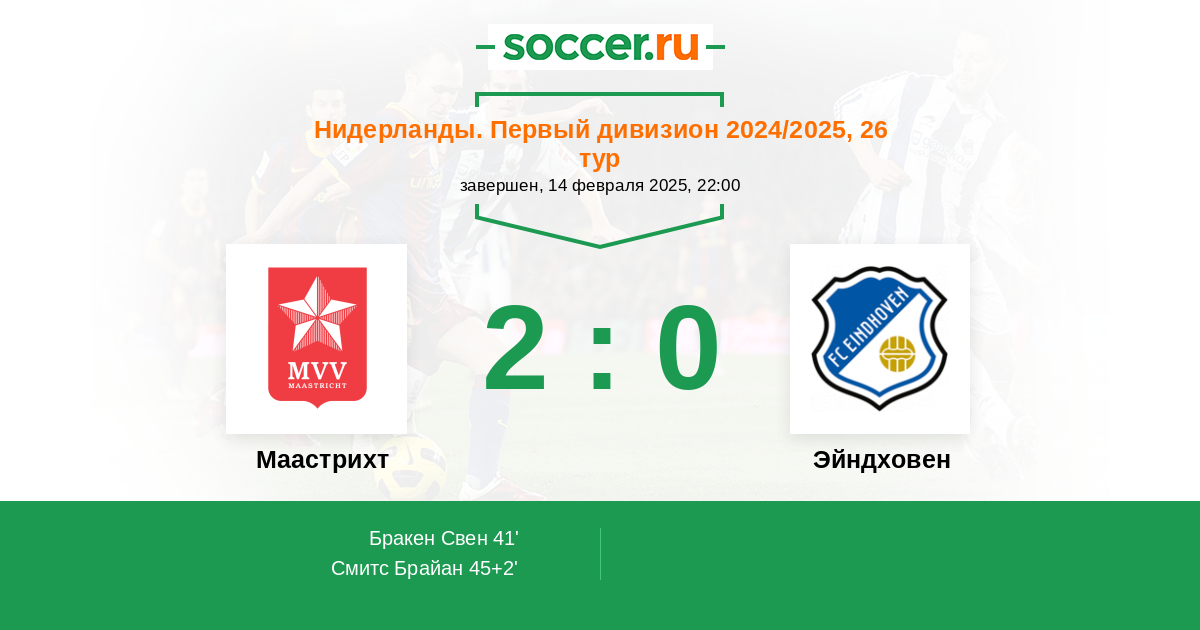 Нидерланды. Первый дивизион 07.11.2014 Маастрихт Логотип футбольный клуб Маастрихт 1:2 Логотип футбольный клуб Эйндховен Эйндховен