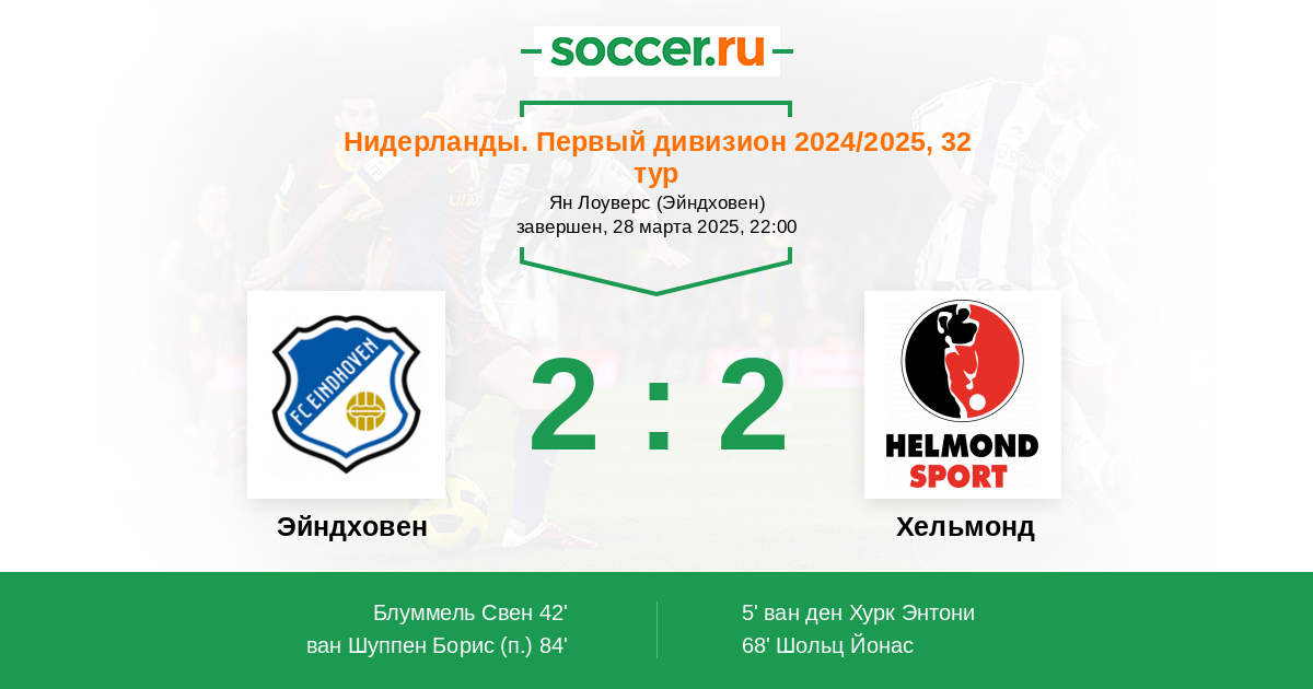 Нидерланды. Первый дивизион 04.03.2022 Хельмонд Логотип футбольный клуб Хельмонд 1:2 Логотип футбольный клуб Эйндховен Эйндховен