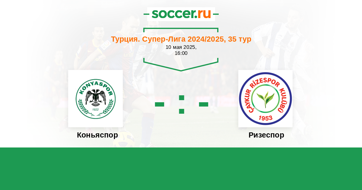 Турция. Суперлига 14.12.2024 Ризеспор Логотип футбольный клуб Ризеспор 1:1 Логотип футбольный клуб Коньяспор Коньяспор
