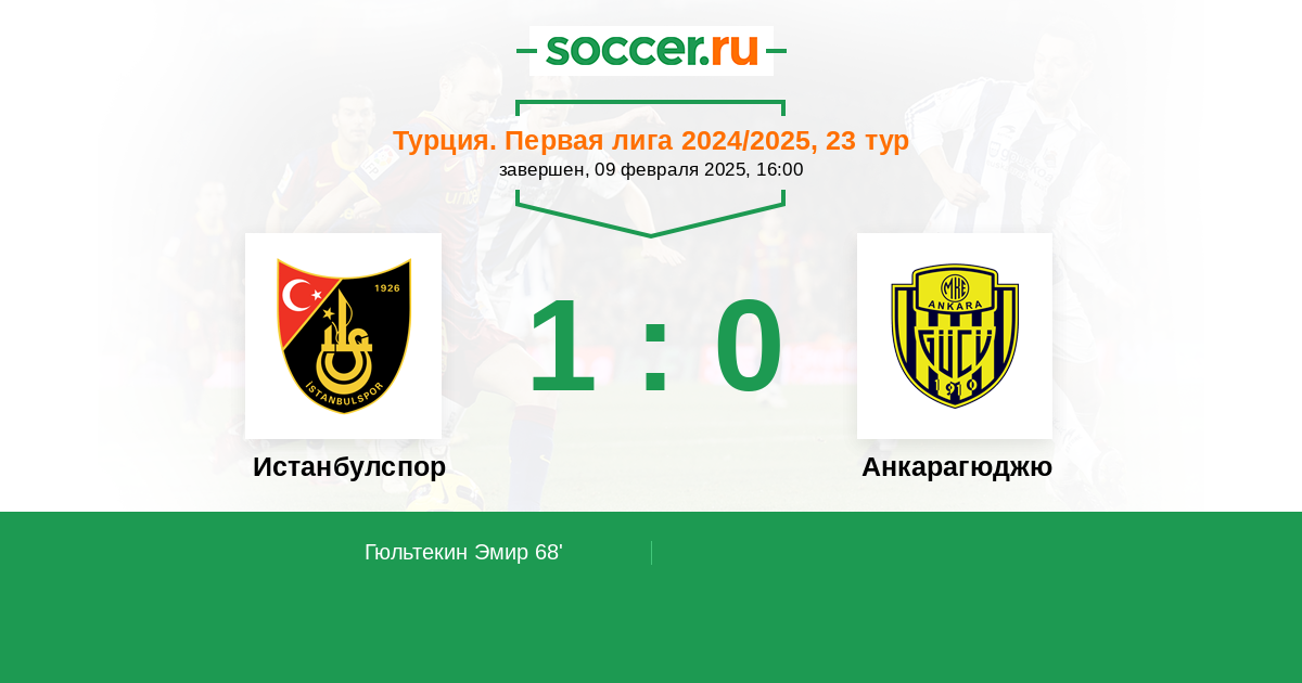 Турция. Первая лига 16.09.2021 Истанбулспор Логотип футбольный клуб Истанбулспор (Стамбул) 0:1 Логотип футбольный клуб Анкарагюджю Анкарагюджю