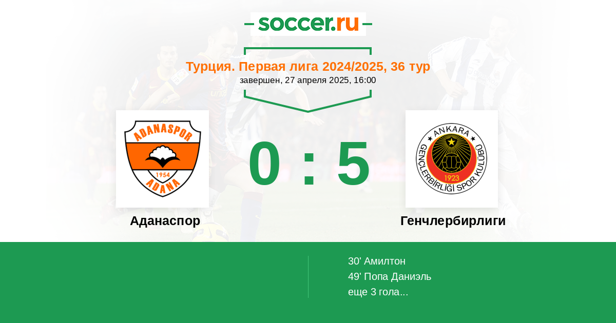 Турция. Первая лига 21.08.2021 Аданаспор Логотип футбольный клуб Аданаспор 0:0 Логотип футбольный клуб Генчлербирлиги (Анкара) Генчлербирлиги