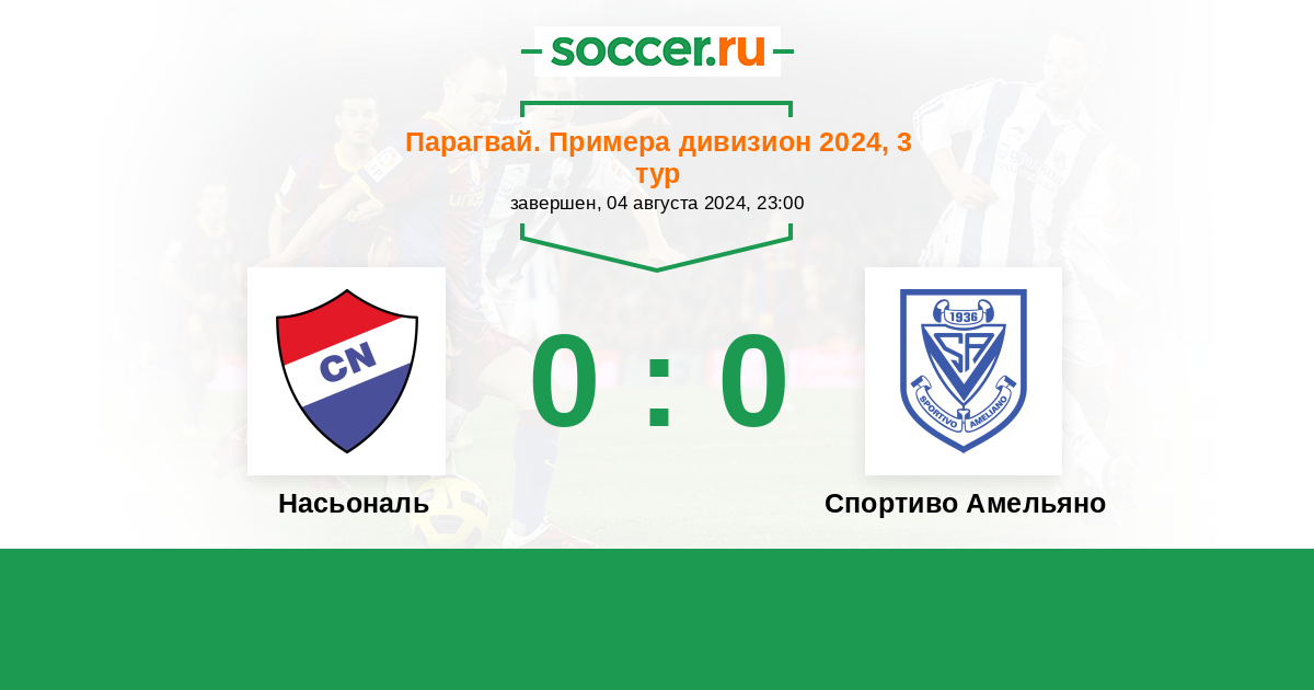 Парагвай. Примера дивизион 06.04.2024 Насьональ Логотип футбольный клуб Насьональ (Асунсьон) 1:1 Логотип футбольный клуб Спортиво Амельяно (Асунсьон) Спортиво Амельяно