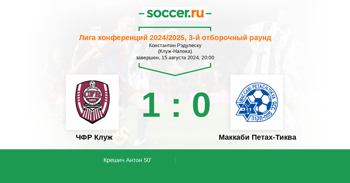 ЧФР Клуж 1:0 0:0 1:0