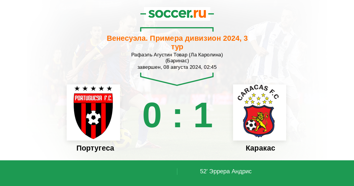 Венесуэла. Примера дивизион 28.08.2022 Португеса Логотип футбольный клуб Португеса (Акаригуа) 2:1 Логотип футбольный клуб Каракас Каракас
