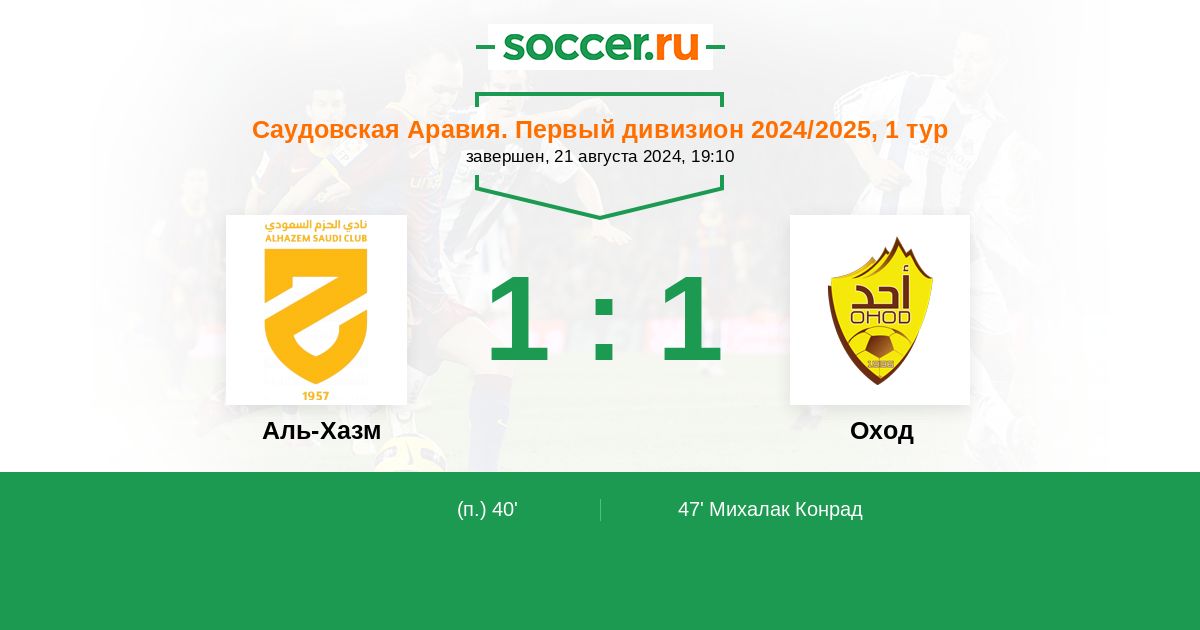 Саудовская Аравия. Премьер-Лига 08.11.2018 Оход Логотип футбольный клуб Оход (Медина) 3:3 Логотип футбольный клуб Аль-Хазм (Эр-Расс) Аль-Хазм