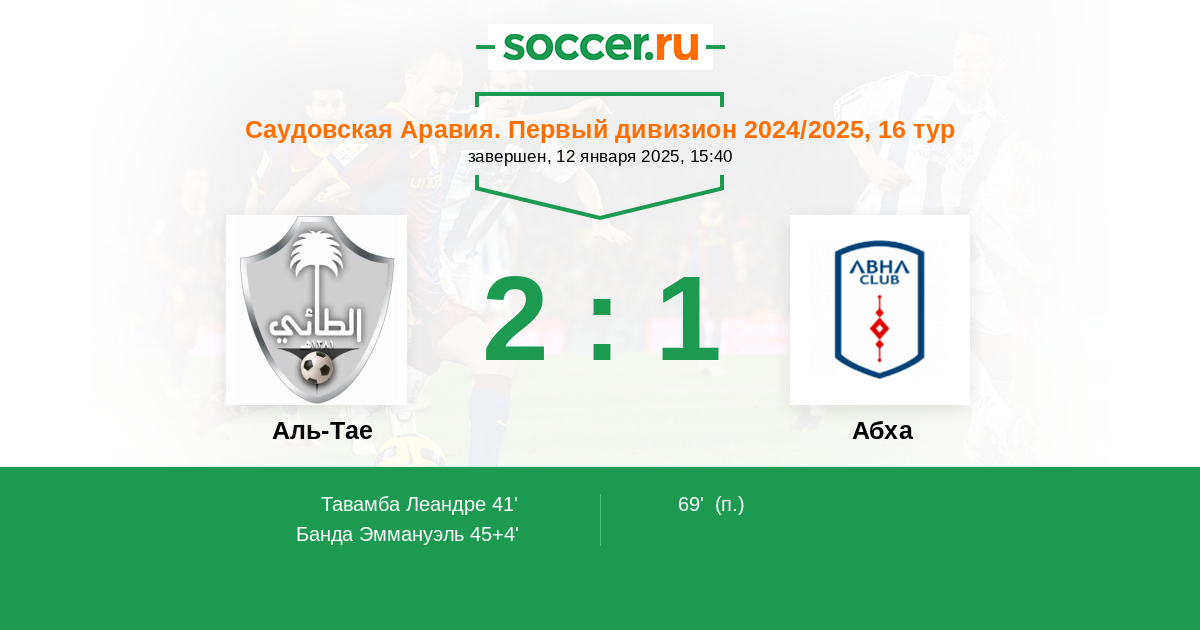 Саудовская Аравия. Премьер-Лига 01.03.2024 Абха Логотип футбольный клуб Абха 2:0 Логотип футбольный клуб Аль-Тае (Хаиль) Аль-Тае