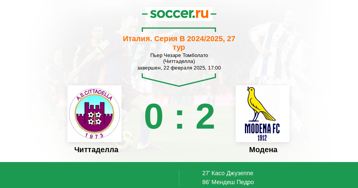 Читтаделла 3:2 1:1 2:1
