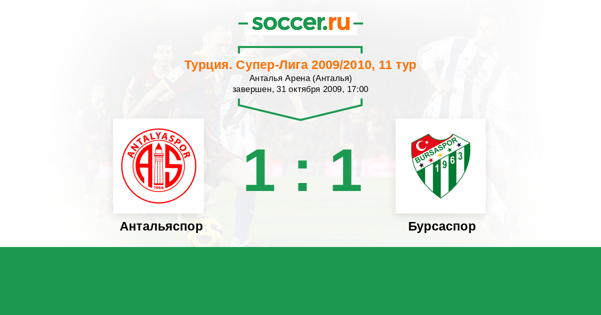 Турция. Суперлига 06.11.2010 Антальяспор Логотип футбольный клуб Антальяспор 2:2 Логотип футбольный клуб Бурсаспор Бурсаспор