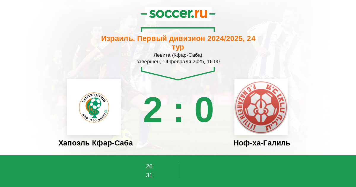 Израиль. Первый дивизион 02.02.2024 Хапоэль Кфар-Саба Логотип футбольный клуб Хапоэль Кфар-Саба 2:3 Логотип футбольный клуб Ноф-ха-Галиль (Назарет Иллит) Ноф-ха-Галиль