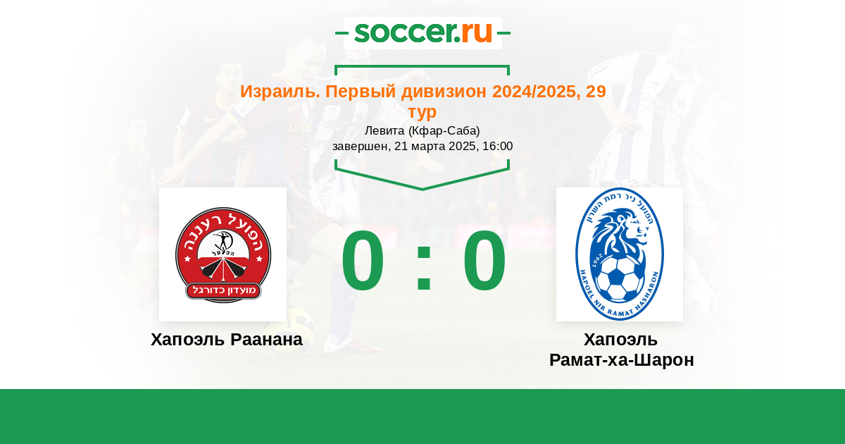 Израиль. Первый дивизион 28.03.2022 Хапоэль Рамат-ха-Шарон Логотип футбольный клуб Хапоэль Рамат-ха-Шарон 2:0 Логотип футбольный клуб Хапоэль Раанана Хапоэль Раанана