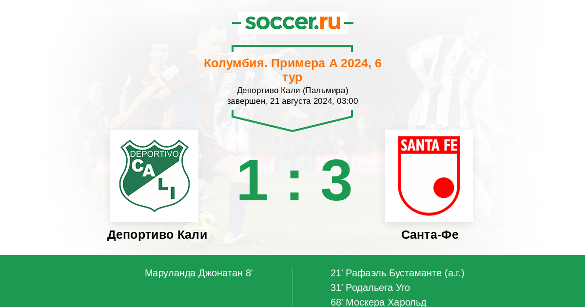Колумбия. Примера А 18.07.2021 Санта-Фе Логотип футбольный клуб Санта-Фе (Богота) 1:2 Логотип футбольный клуб Депортиво Кали Депортиво Кали