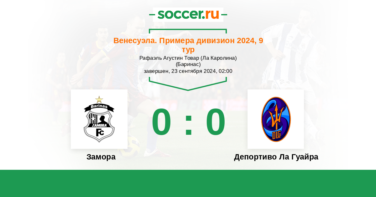 Венесуэла. Примера дивизион 17.06.2022 Замора Логотип футбольный клуб Замора (Баринас) 2:3 Логотип футбольный клуб Депортиво Ла Гуайра (Каракас) Депортиво Ла Гуайра