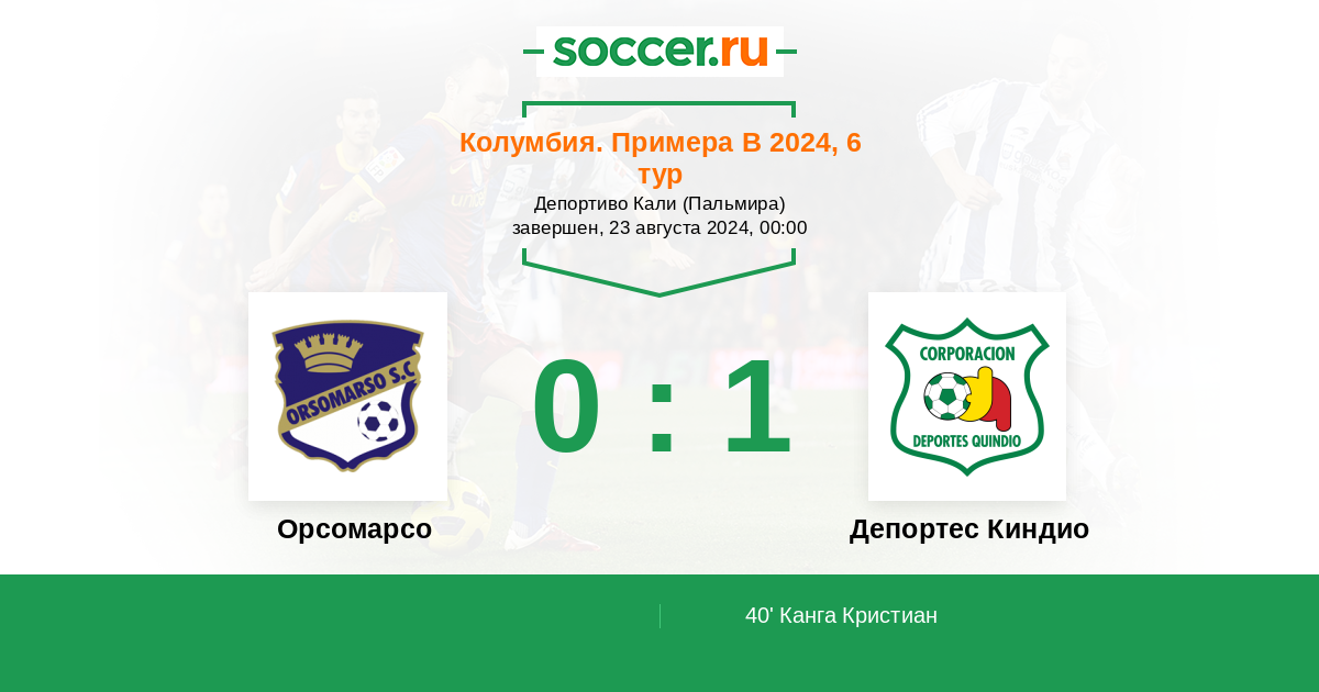 Колумбия. Примера B 24.04.2023 Орсомарсо Логотип футбольный клуб Орсомарсо 1:0 Логотип футбольный клуб Депортес Киндио (Армения) Депортес Киндио