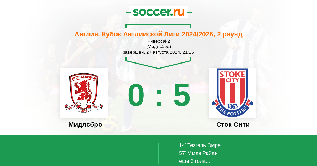 Англия. Чемпионшип 28.09.2024 Мидлсбро Логотип футбольный клуб Мидлсбро 2:0 Логотип футбольный клуб Сток Сити (Сток-он-Трент) Сток Сити