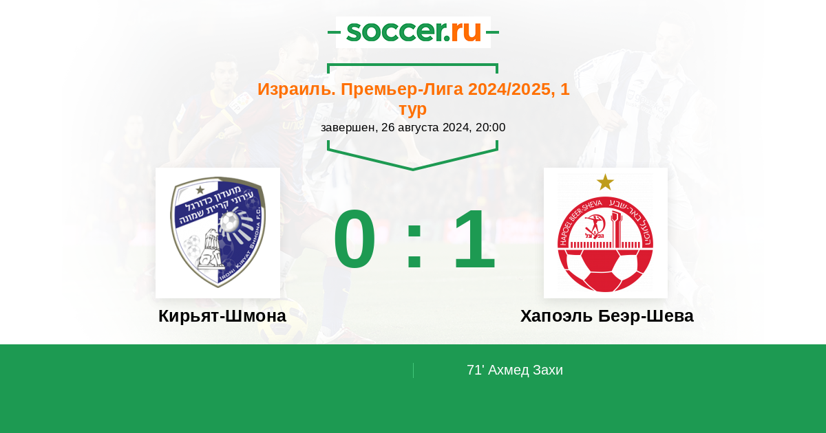 Израиль. Премьер-Лига 23.08.2015 Кирьят-Шмона Логотип футбольный клуб Кирьят-Шмона 1:3 Логотип футбольный клуб Хапоэль Беэр-Шева Хапоэль Беэр-Шева