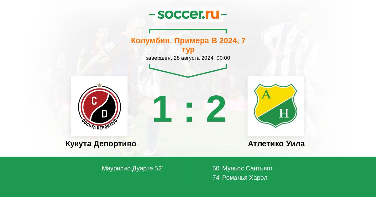 Колумбия. Примера B 06.06.2025 Кукута Депортиво Логотип футбольный клуб Кукута Депортиво 2:1 Логотип футбольный клуб Атлетико Уила (Нейва) Атлетико Уила