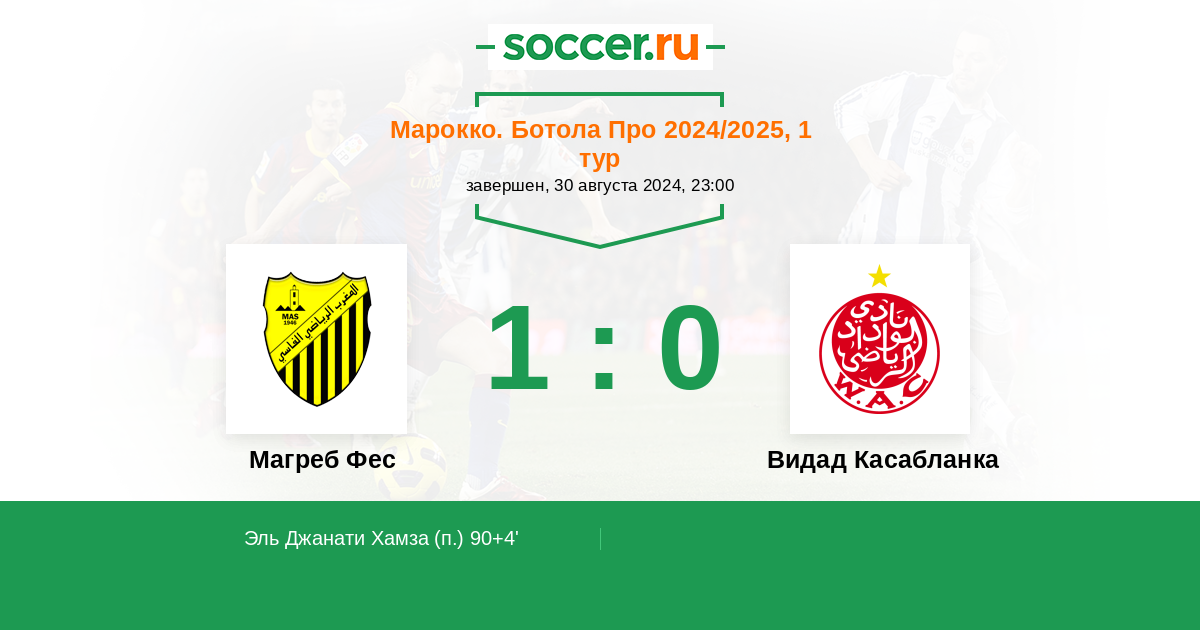 Марокко. Ботола Про 26.12.2020 Магреб Фес Логотип футбольный клуб Магреб Фес 0:1 Логотип футбольный клуб Видад Касабланка Видад Касабланка