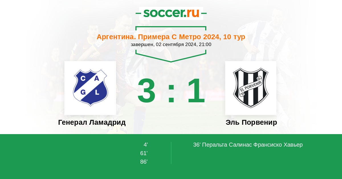 Аргентина. Примера С Метро 12.02.2011 Генерал Ламадрид Логотип Генерал Ламадрид (Буэнос-Айрес) 4:0 Логотип футбольный клуб Эль Порвенир (Буэнос-Айрес) Эль Порвенир