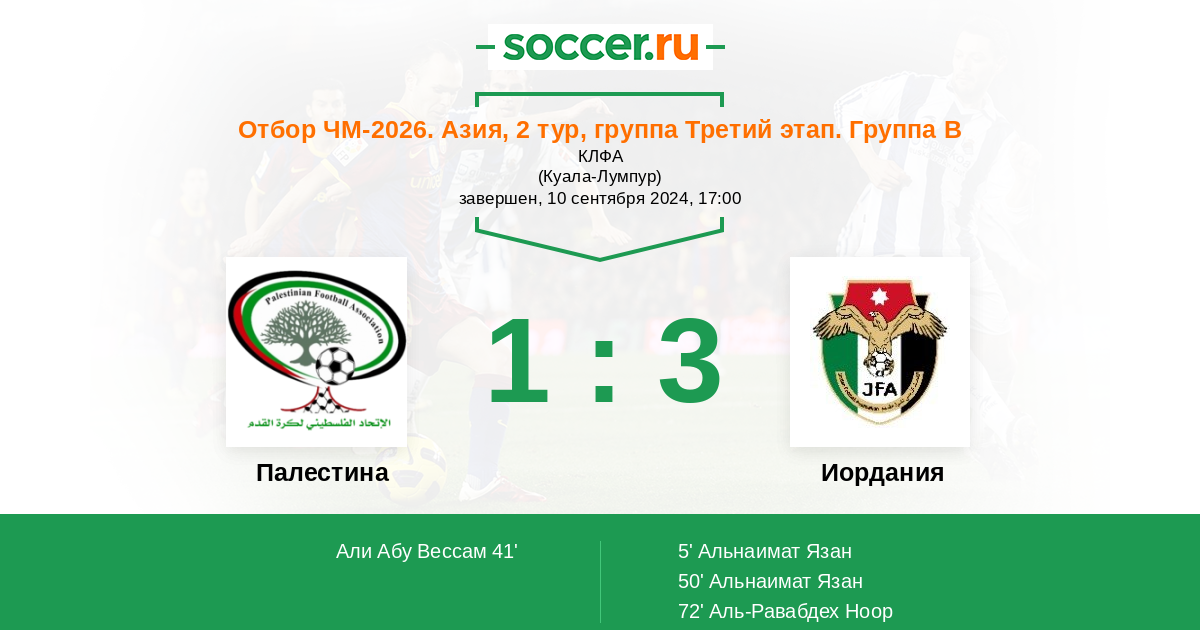 Палестина - Иордания ! Стартовали команды в турнире " ни шатко , ни валко " и набрали пока только по одному очку . Считаю гостей сильнее и ставлю на них .