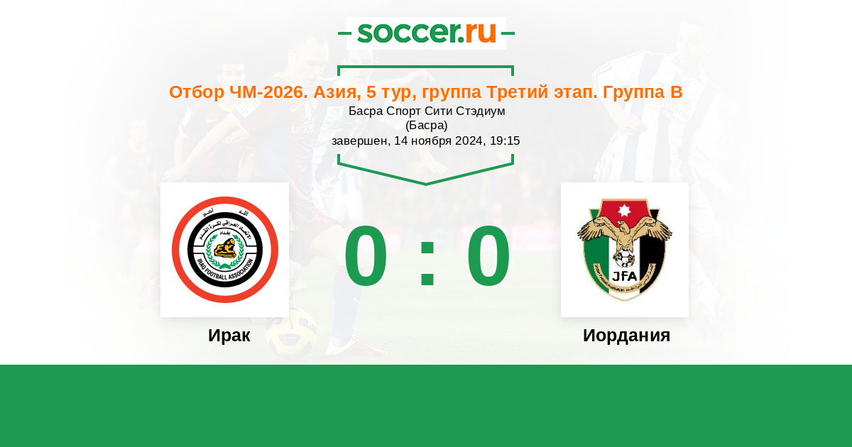 Отбор ЧМ. Азия 10.06.2025 Иордания Логотип Иордания 0:1 Логотип Ирак Ирак