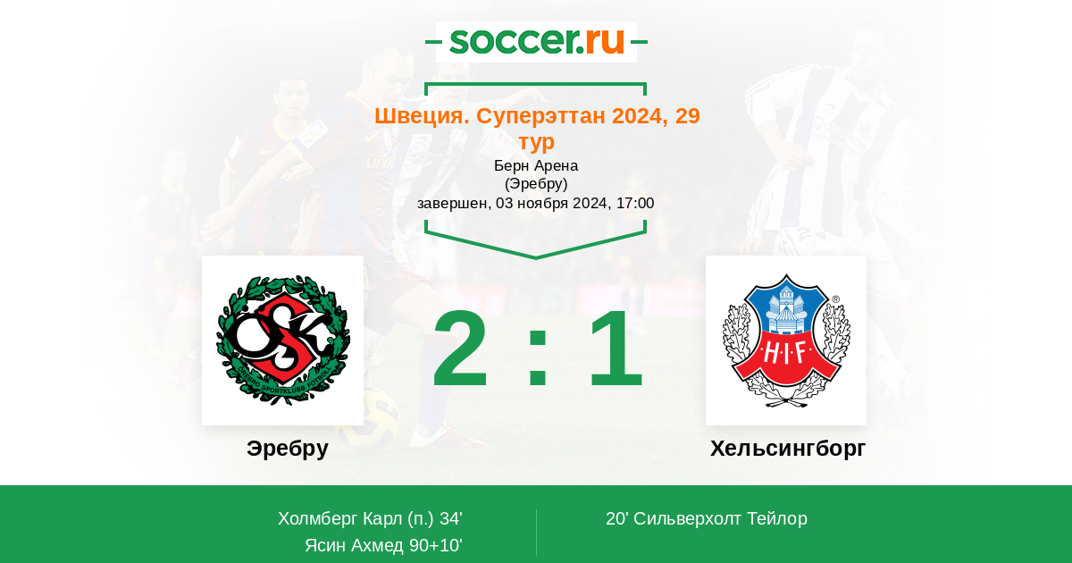 Швеция. Аллсвенскан 25.10.2020 Эребру Логотип футбольный клуб Эребру 3:2 Логотип футбольный клуб Хельсингборг Хельсингборг