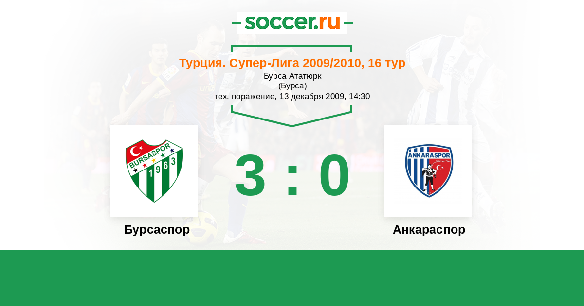 Турция. Суперлига 08.05.2010 Анкараспор Логотип футбольный клуб Анкараспор 0:3 Логотип футбольный клуб Бурсаспор Бурсаспор