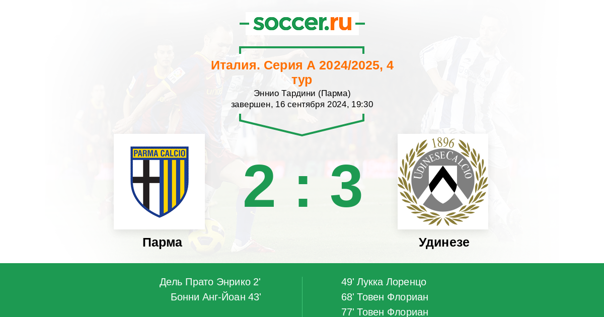 Италия. Серия А 01.03.2025 Удинезе Логотип футбольный клуб Удинезе 1:0 Логотип футбольный клуб Парма Парма