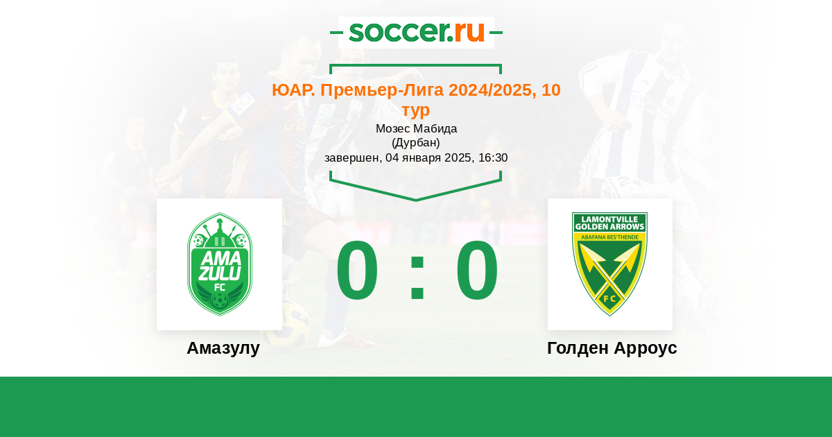 ЮАР. Премьер-Лига 16.12.2020 Амазулу Логотип футбольный клуб Амазулу (Дурбан) 0:2 Логотип футбольный клуб Голден Арроус (Дурбан) Голден Арроус