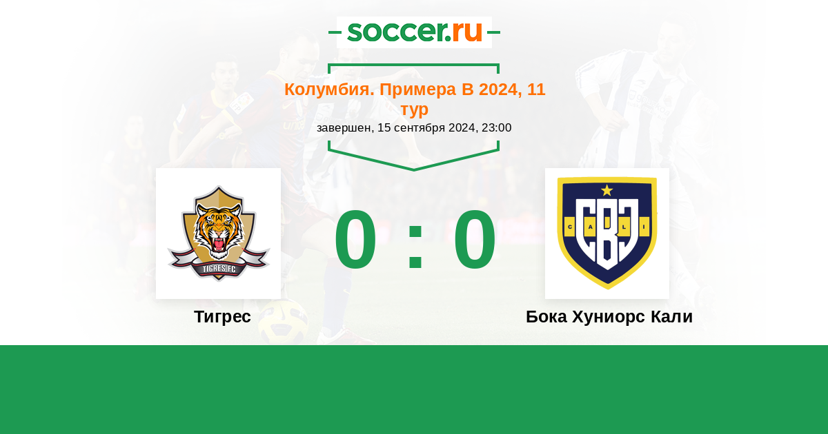 Колумбия. Примера B 23.09.2025 Бока Хуниорс Кали Логотип футбольный клуб Бока Хуниорс Кали (Сантьяго-де-Кали) 0:1 Логотип футбольный клуб Тигрес (Сипакира) Тигрес