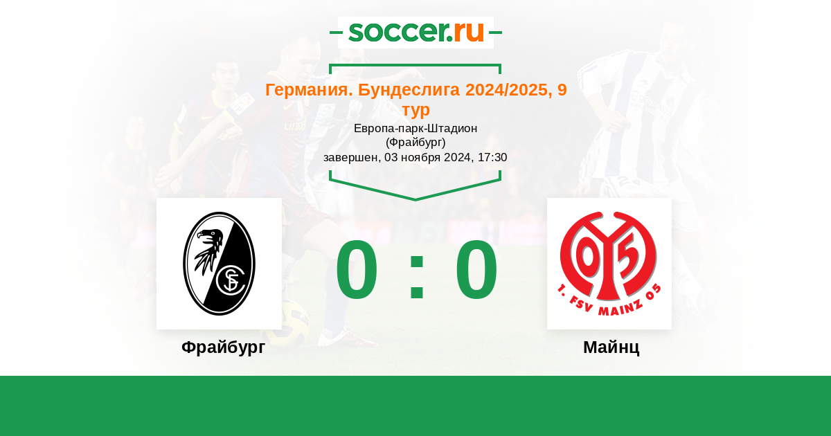 Германия. Бундеслига 18.09.2021 Майнц Логотип футбольный клуб Майнц 0:0 Логотип футбольный клуб Фрайбург Фрайбург