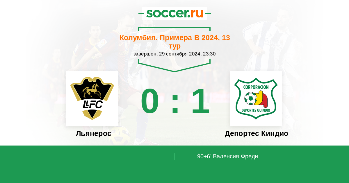 Колумбия. Примера B 20.09.2015 Льянерос Логотип футбольный клуб Льянерос (Вильявисенсио) 1:4 Логотип футбольный клуб Депортес Киндио (Армения) Депортес Киндио