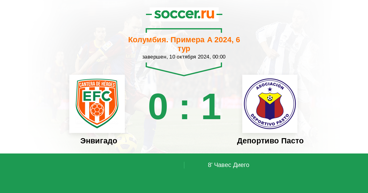 Колумбия. Примера А 18.10.2018 Энвигадо Логотип футбольный клуб Энвигадо 1:0 Логотип футбольный клуб Депортиво Пасто Депортиво Пасто