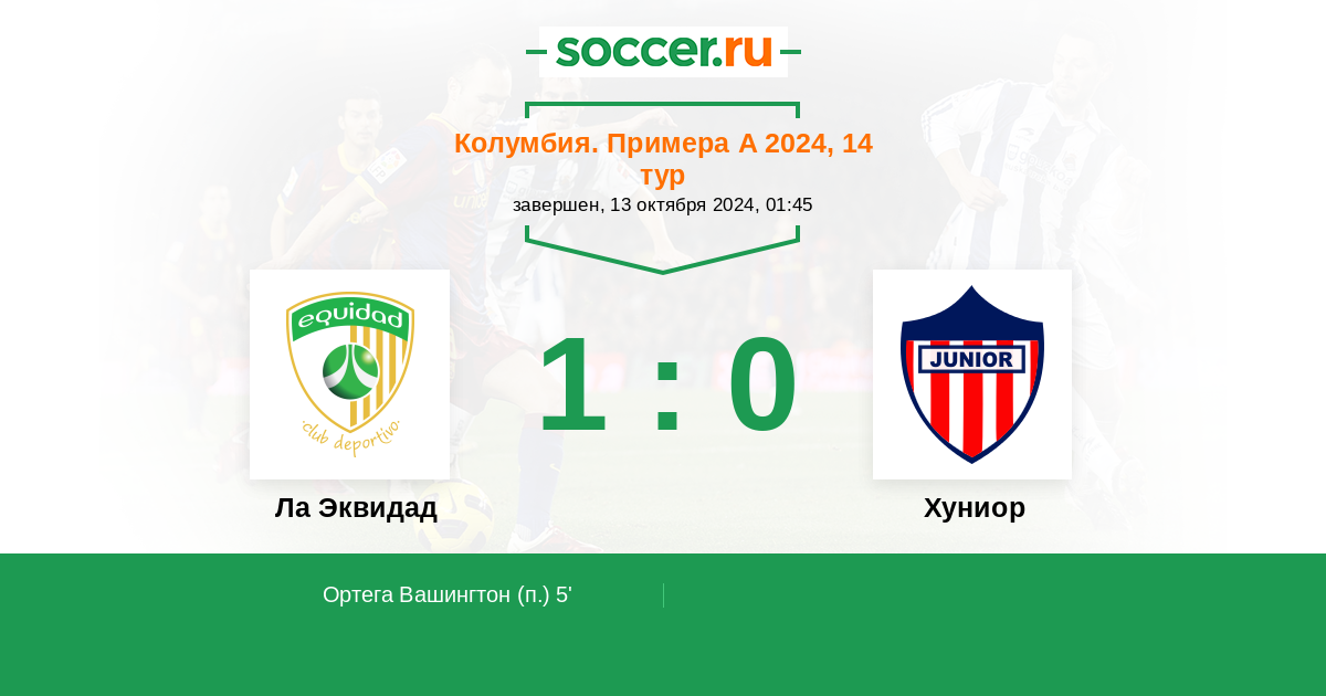 Колумбия. Примера А 30.03.2024 Хуниор Логотип футбольный клуб Хуниор (Барранкилья) 1:0 Логотип футбольный клуб Ла Эквидад (Богота) Ла Эквидад