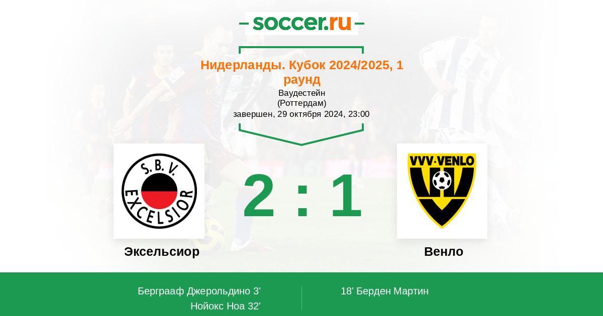 Нидерланды. Первый дивизион 16.09.2024 Эксельсиор Логотип футбольный клуб Эксельсиор (Роттердам) 4:0 Логотип футбольный клуб Венло Венло