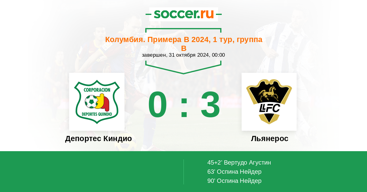 Колумбия. Примера B 14.10.2019 Льянерос Логотип футбольный клуб Льянерос (Вильявисенсио) 0:1 Логотип футбольный клуб Депортес Киндио (Армения) Депортес Киндио