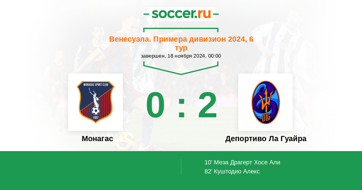 Венесуэла. Примера дивизион 06.10.2023 Монагас Логотип футбольный клуб Монагас (Матурин) 2:2 Логотип футбольный клуб Депортиво Ла Гуайра (Каракас) Депортиво Ла Гуайра