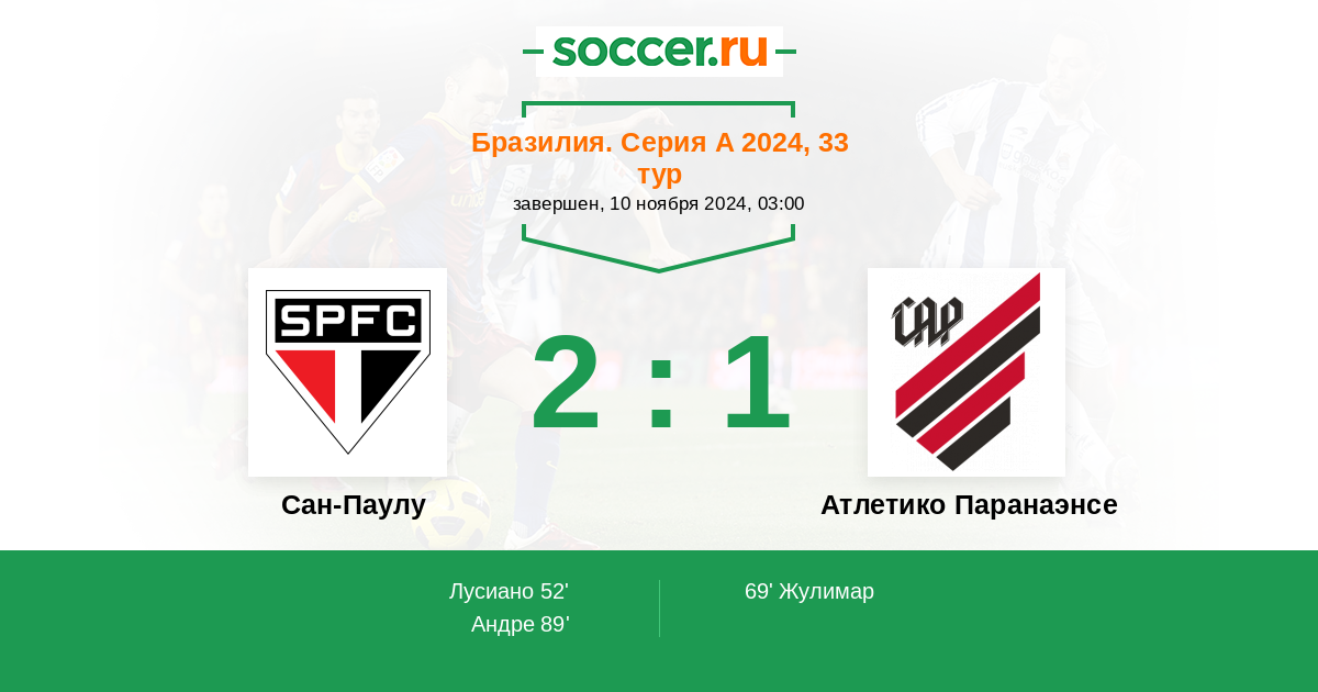 Бразилия. Серия А 15.10.2017 Сан-Паулу Логотип футбольный клуб Сан-Паулу 2:1 Логотип футбольный клуб Атлетико Паранаэнсе (Куритиба) Атлетико Паранаэнсе