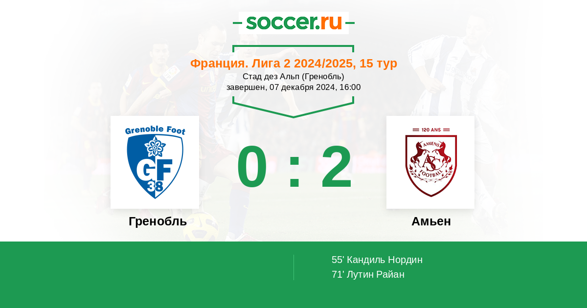 Франция. Лига 2 14.02.2025 Амьен Логотип футбольный клуб Амьен 1:4 Логотип футбольный клуб Гренобль Гренобль