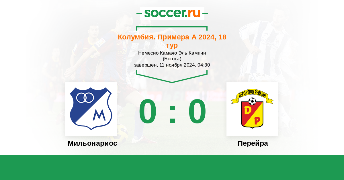 Колумбия. Примера А 23.07.2023 Мильонариос Логотип футбольный клуб Мильонариос (Богота) 0:0 Логотип футбольный клуб Перейра Перейра