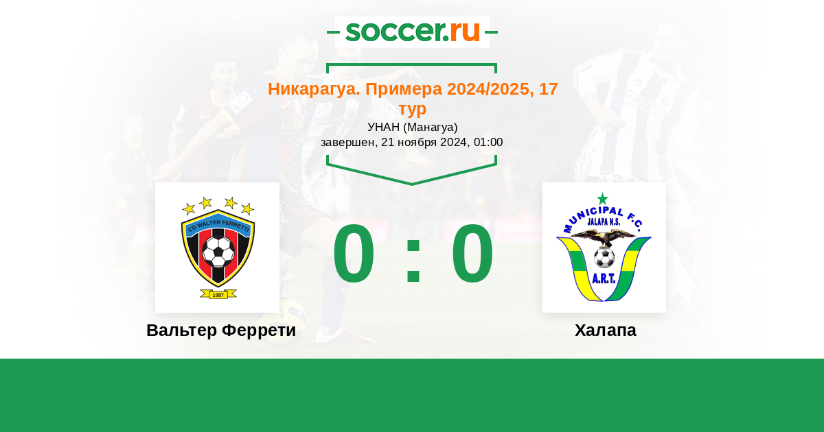 Никарагуа. Примера 20.02.2025 Халапа Логотип футбольный клуб Халапа (Окоталь) 0:0 Логотип футбольный клуб Вальтер Феррети (Манагуа) Вальтер Феррети