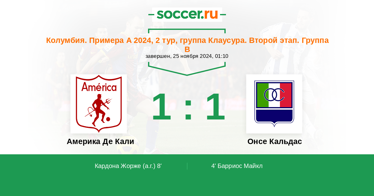 Колумбия. Примера А 30.01.2026 Америка Де Кали Логотип футбольный клуб Америка Де Кали 1:1 Логотип футбольный клуб Онсе Кальдас (Манисалес) Онсе Кальдас