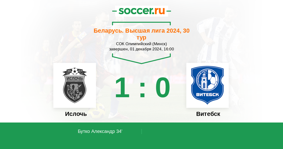 Беларусь. Первая лига 18.10.2014 Ислочь Логотип футбольный клуб Ислочь (Минск) 2:0 Логотип футбольный клуб Витебск Витебск