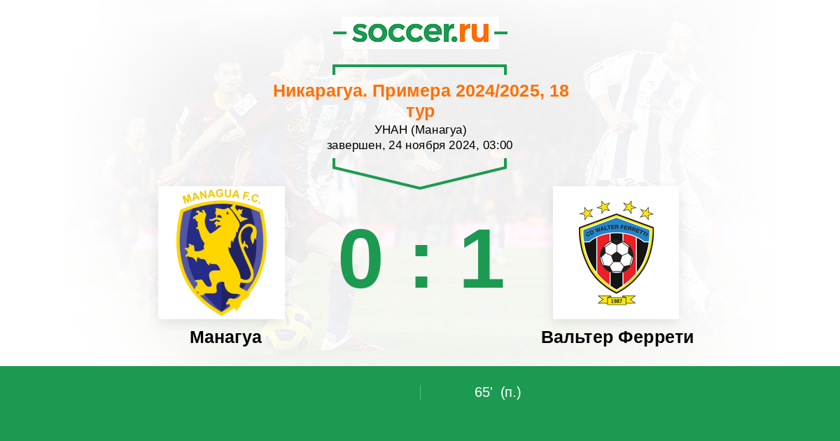 Никарагуа. Примера 24.02.2025 Манагуа Логотип футбольный клуб Манагуа 2:0 Логотип футбольный клуб Вальтер Феррети (Манагуа) Вальтер Феррети